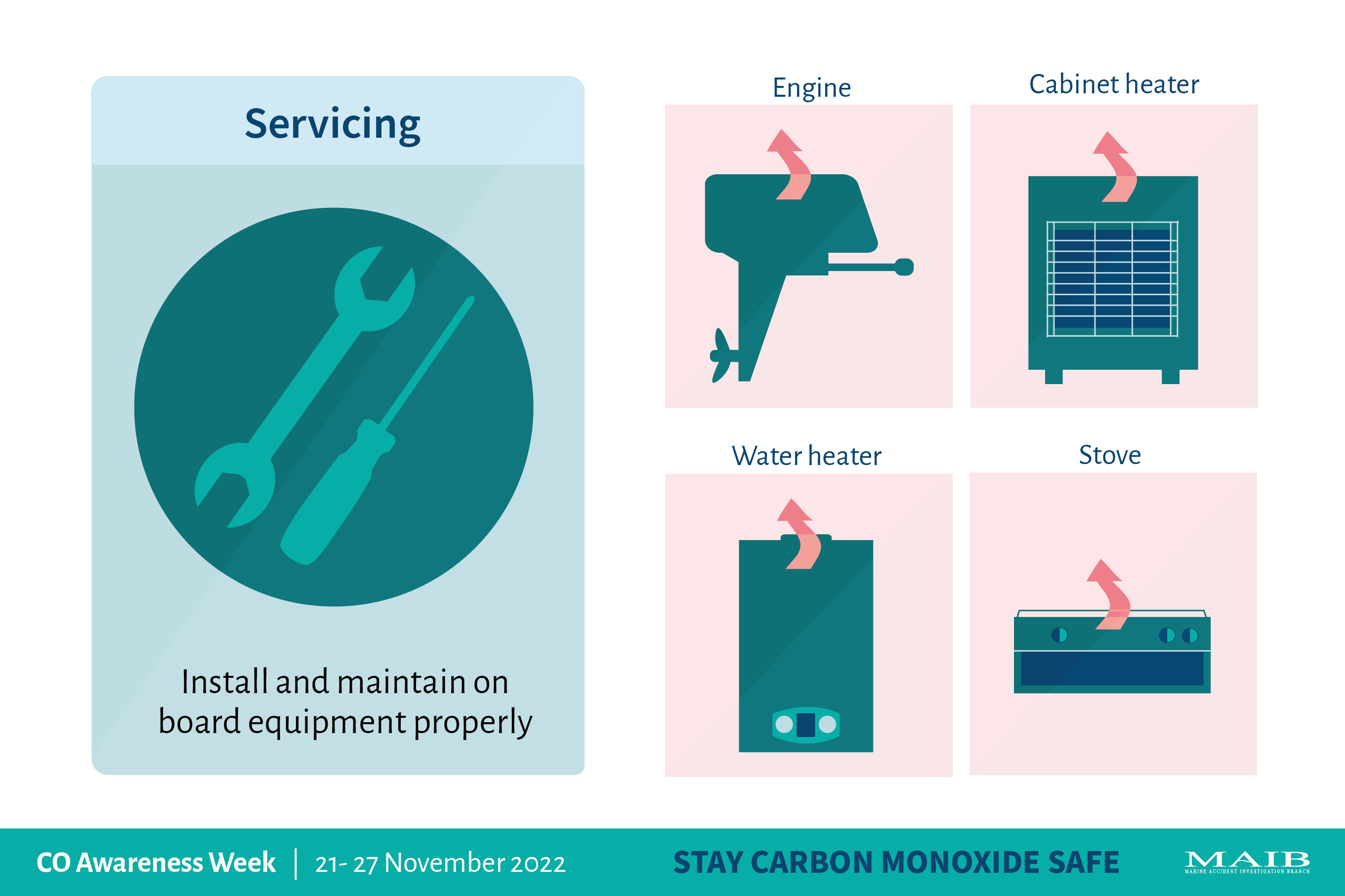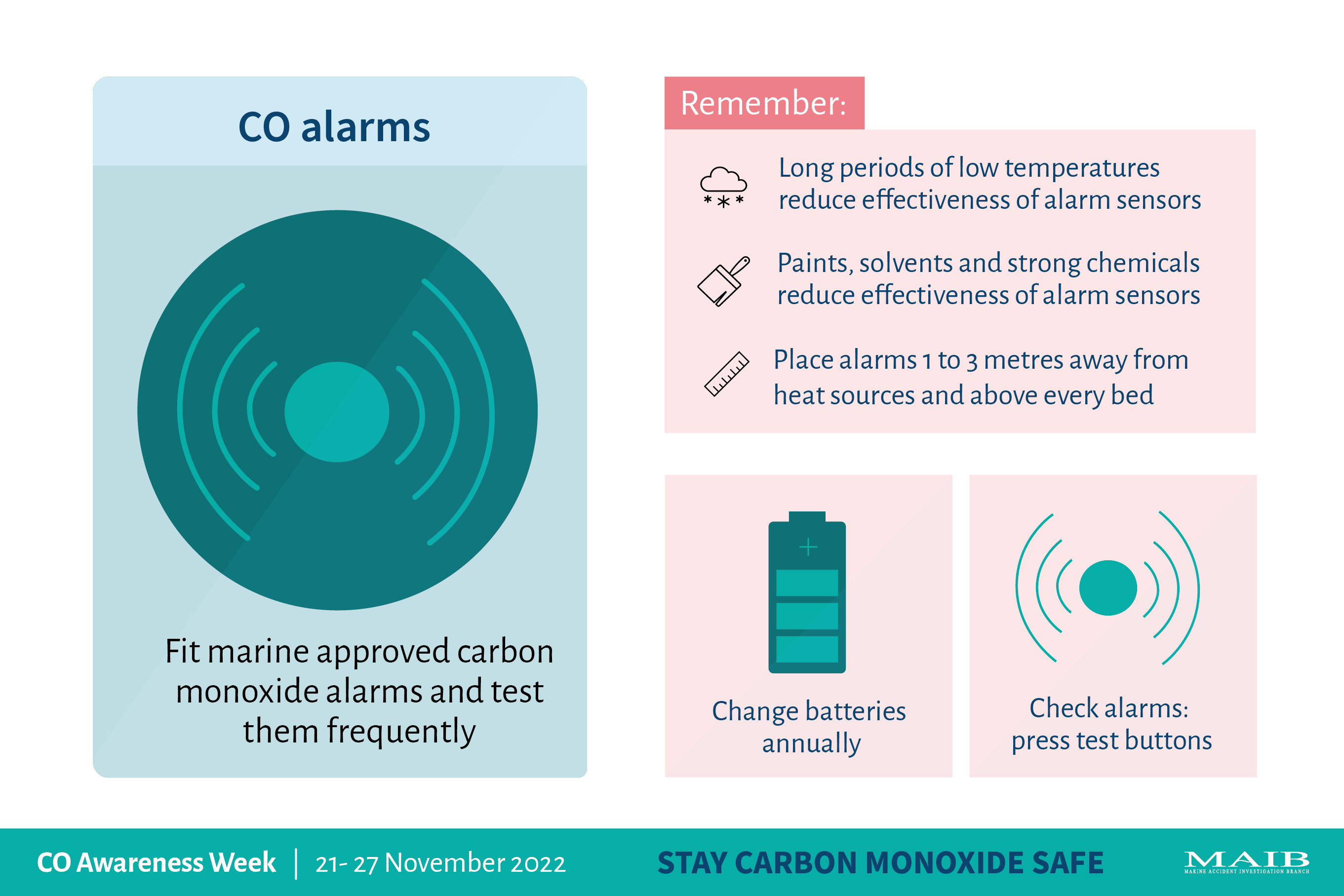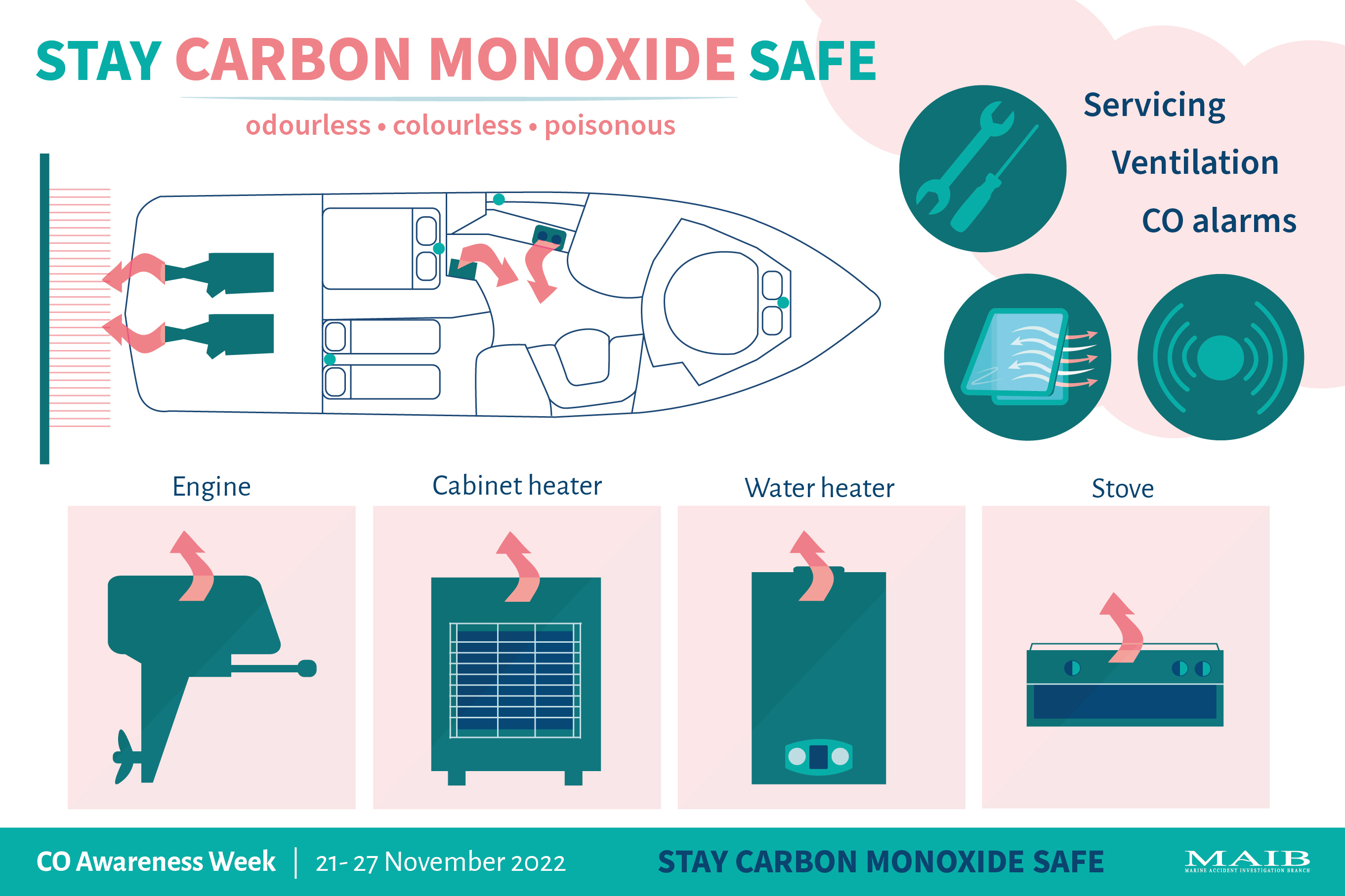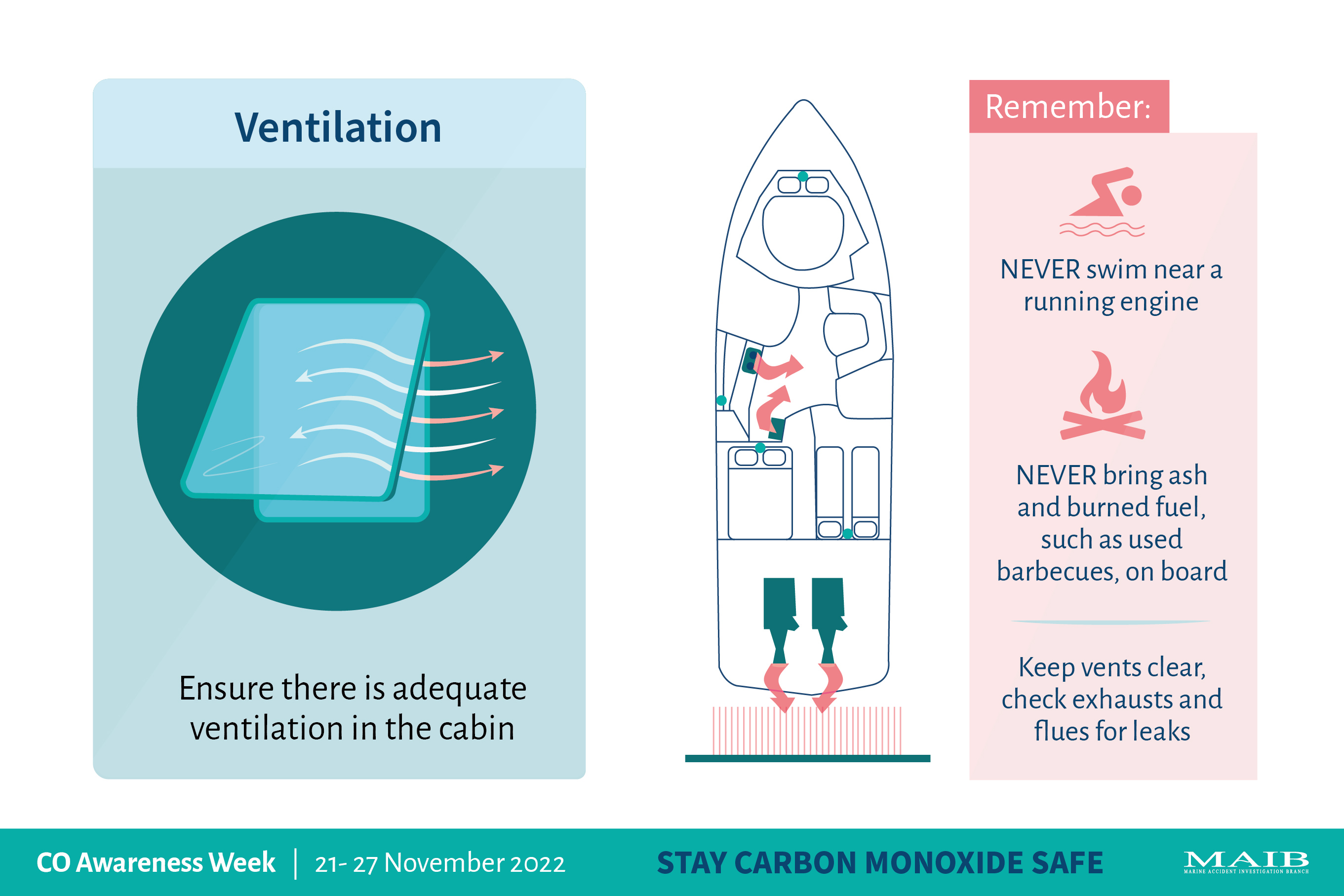 Today, to mark the start of Carbon Monoxide Awareness Week (21 to 27 November), the MAIB is reminding boat users of the three simple steps that they can take to stay safe from this silent killer.