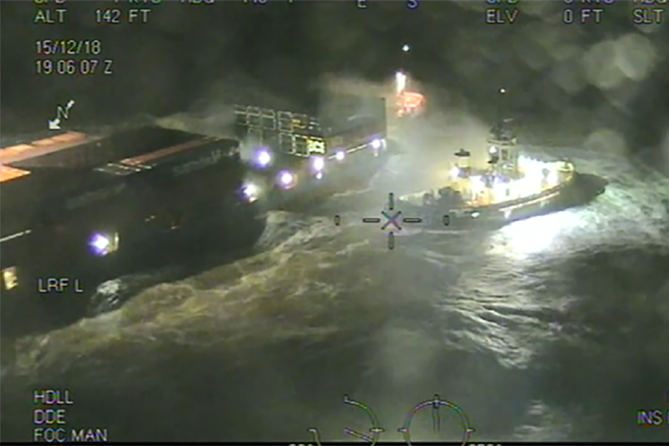 Video from search and rescue helicopter on the night: https://www.youtube.com/watch?v=Kr0-zAmFgK4 . Please credit Maritime and Coastguard Agency (MCA)