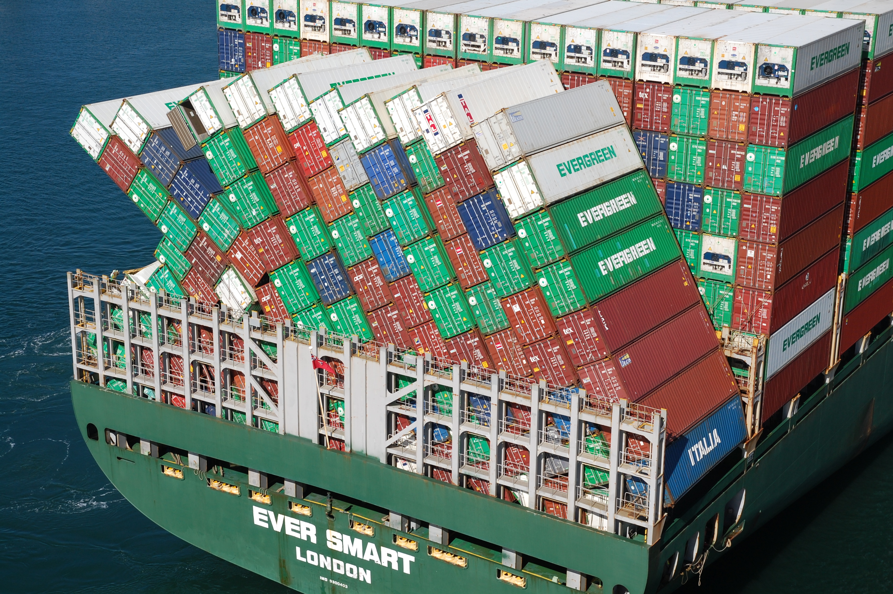 On 30 October 2017, the UK registered container ship Ever Smart suffered a container stow collapse while on passage between Taipei, Taiwan and Los Angeles, USA. The master had changed the ship’s passage plan to avoid severe weather caused by a developing depression east of Japan. The ship continued in heavy seas; rolling and pitching heavily with frequent bow flare slamming. Once the weather had abated, the crew discovered that the container stacks on the aft most bay had collapsed and toppled to port. Of the 151 containers in the stow, 42 were lost overboard and 34 were damaged. Superficial damage was caused to the ship.